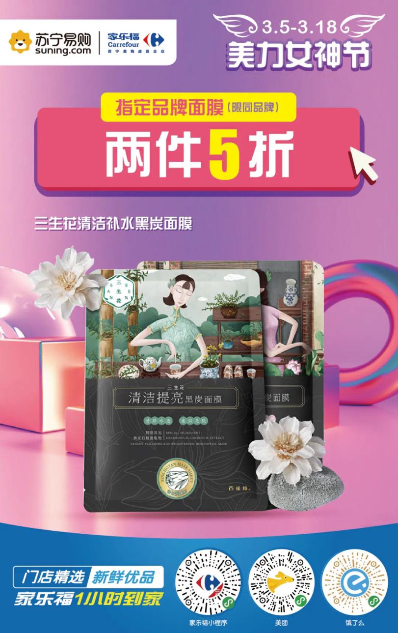 此外,3月5日至3月18日,指定品牌面膜两件5折,一键下单,家乐福“码”上送到家。