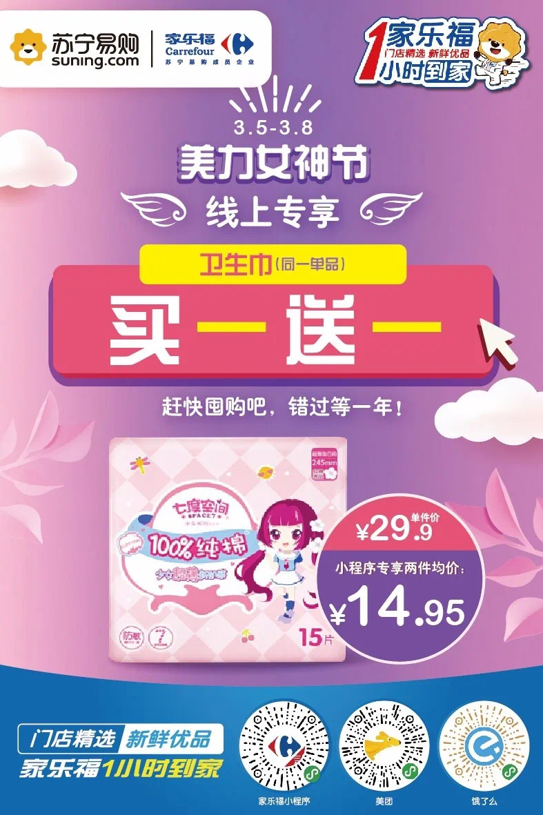 当然,家乐福也一直在线,给你们送上仪式感节日福利。3月5日至3月8日,家乐福美“力”女神节热辣来袭。家乐福小程序、苏宁易购APP、苏宁小店APP、美团外卖和饿么了五大线上平台“火力全开”,让你的美丽一直营业不打烊。
