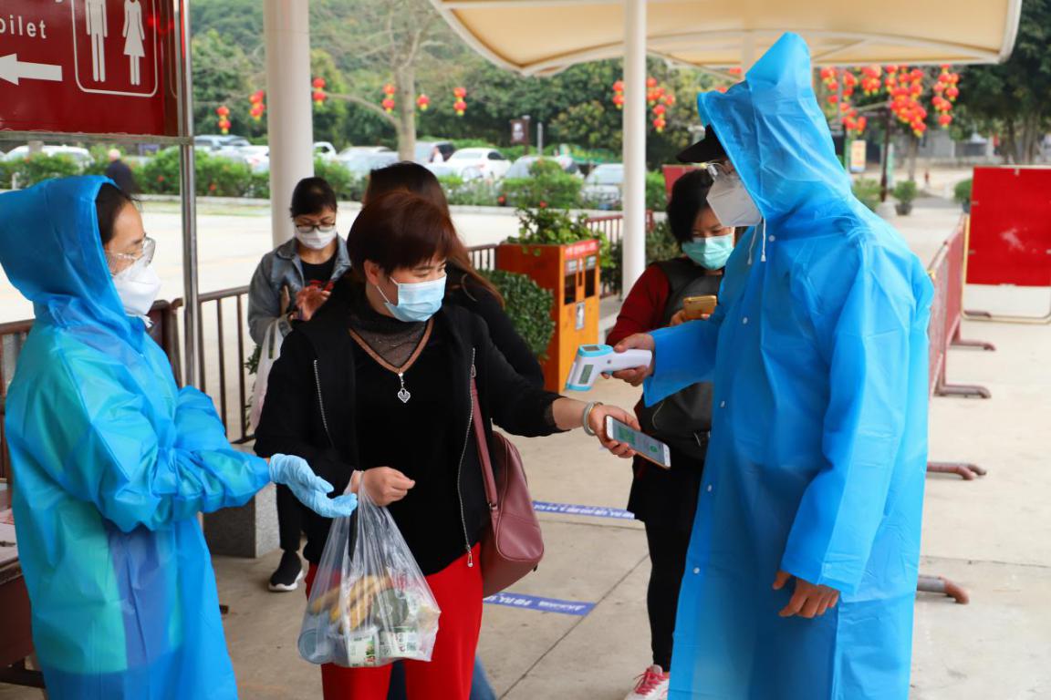 为迎接恢复开园,并做好疫情防控工作,保障游客安全有序游览,东莞观音山景区制定了系列防疫举措,做足了准备。针对景区员工,严格监测复工员工的健康动态,强化疫情防控培训,严格执行疫情防控期的工作规范。恢复开园后,旅游接待服务工作期间所需防疫物资方面,景区充分储备了体温测量仪、口罩、消毒用品等,对游客活动集散点、服务场所等内外环境采取了全方位消毒防疫措施,强化、细化了开园后游览管理体系,制定系列应急保障预案。此外,景区实行实名制无接触自助购票、取票,积极正确引导游客做好个人卫生防护,为游客健康安全有序游览提供充分的保障。