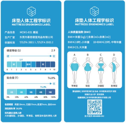 3月15日,京东品质认证与深圳赛德检测联合发布的“健康睡眠新标准”京东直播上,首次发布“床垫人体工程学标识”,直播过程中,检测专家团结合人体质量指数BMI和人体体型等,科普床垫选购方法,让消费者在了解自身身体情况基础上,选购适合自身的床垫。