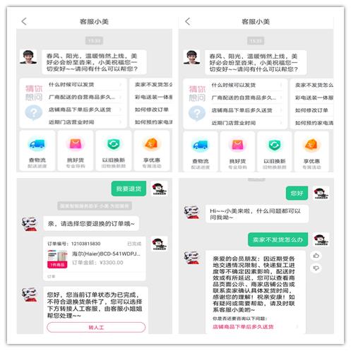 智能客服小美还赋能了人工在线客服会话辅助功能,可根据用户问题,自动在工作台右侧给出参考答案,供人工客服选择回复用户,客服工作效率提升近70%。在系统赋能的同时,客服中心也合理进行了在线客服人员实时灵活调配,应对话务进线波动,截至2020年3月中旬,在线客服平均接通率达到95%以上。