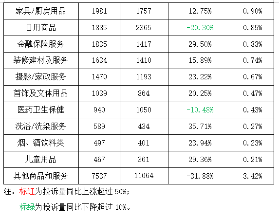 从投诉量变化情况来看,互联网及通信行业服务、文体旅游服务、教育培训及化妆品/美容美发/整形四个行业投诉量同比增长超过50%;公共设施服务、日用商品、服装鞋帽以及医药卫生保健四个行业投诉量同比下降超过10%。其中公共设施服务类的减幅最大,为38.29%,主要原因为共享出行行业洗牌,部分企业退出市场,投诉量随之下降。