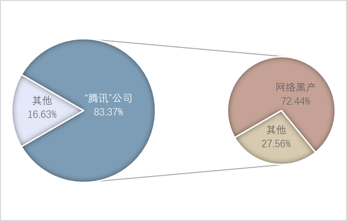 2019年腾讯公司加大了对诈骗、黄赌毒等“网络黑产”问题的打击力度,导致该类问题的投诉量骤增,“网络黑产”问题是腾讯公司投诉增量的主要来源,占比超过腾讯公司全年的70%。(见图4)