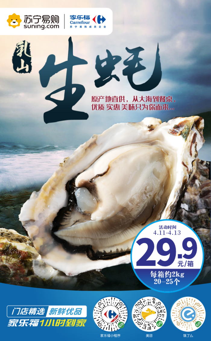 4月11日至13日,家乐福限时秒杀价!买它!省了跑去乳山的车费,在家就能吃到新鲜乳山生蚝。