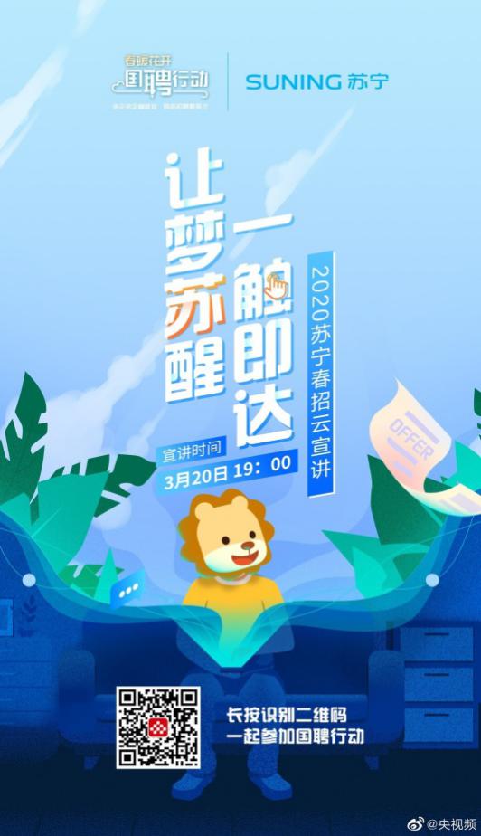 作为与民生、就业密切相关的大型零售企业,苏宁早在2月8日便启动了无接触春招,3月20日,苏宁更是通过央视频国聘行动开启线上宣讲。目前,线上面试与offer发放正在持续进行中。
