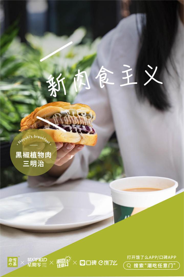 而在此次合作之前,星期零的产品也早已经过了相当长时间的市场考验。奈雪全国旗舰店梦工厂于2019年秋上线了三款植物肉产品,不到一小时便被抢购一空 ,这也促进了奈雪在潮吃任意门活动中增加至 9家店联推黑椒植物肉三明治 。