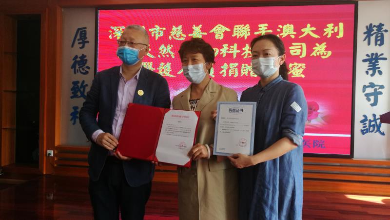 深圳市康宁医院党委书记王建红,深圳市慈善会副秘书长董昕,澳大利亚天然生物科技公司驻中国办事处代表全波,深圳市康宁医院党委委员、党办主任工会副主席陈静,深圳市康宁医院工会女工委主任刘雪琴,深圳市慈善会社会帮扶部部长肖志辉等参加捐赠仪式。