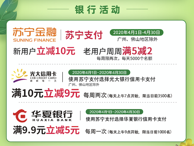 为响应政府号召和消费者日益见长的购物需求,其中深圳苏宁发放千万补贴券,即日起至5月5日,发放5000万消费券,每人最高可领850元,部分家电可叠加24期免息,同时苏宁推出家电以旧换新服务,最高可领补贴1500元,提供旧机评估回收,购新机补贴以及优惠券等多种形式,为满足消费者对智能、节能及健康家电需求,深圳苏宁设定1000万节能补贴专项券,最高可领400元优惠券,用于一级能效、人工智能、5G等产品,此番一方面活跃线下门店消费,另一方面也带动商圈附近餐饮和娱乐业的消费增长。