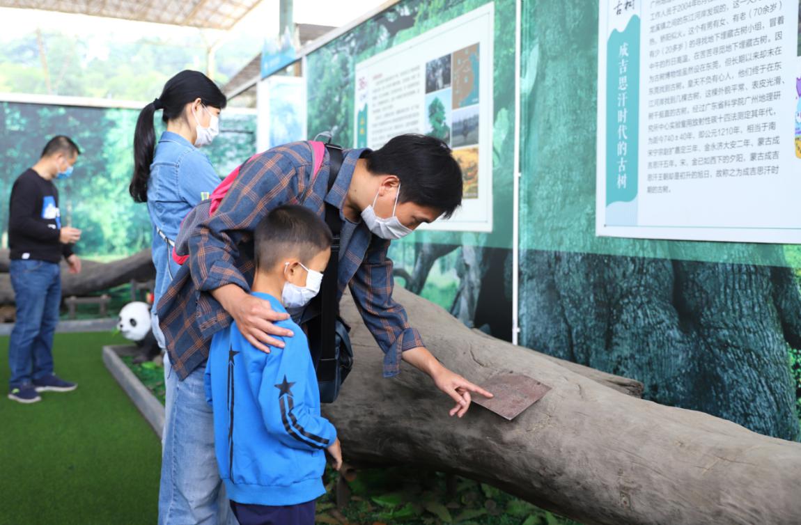 踏上6.8公里的登山步道,丰富的探秘之旅已开始。孩子们在景区专业导游的引导下,走进古树博物馆中了解古时气候与水文状况,在一问一答的互动中解剖发掘地点、树轮、碳化程度、历史等知识;凤凰林作为一处网红摄影打卡点,山峦连绵、蓝天白云相伴的风景掀起了大家的拍照热情,不少孩子还拿起相机研究起摄影小知识,拍摄独具创意的照片;状元廊中,孩子们击鼓明志,许下学业进步的愿望,家长还解读起“鱼跃龙门”、“蟾宫折桂”的寓言彩绘,孩子们兴致勃勃;森林彩绘生动有趣,包含了考拉、猪八戒、狐狸、仙鹤、野猪等,逼真的3D效果在幽静的森林中,犹如步入了“童话世界”,让孩子们倍感惊喜;在天下第一福、许愿池、同心锁中,孩子们与鸽子、锦鲤近距离互动,现场欢笑声连连,大家也共同许下健康喜乐、平安幸福的心愿,将福气带回家。