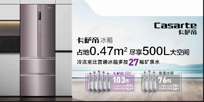 卡萨帝冰箱500WDCTU1宽度只有70公分,箱体厚度只有60公分,而且是自由嵌入的设计,两边只需要预留2公分的散热距离,放在家里的厨房中刚刚好,不会像以前的冰箱那样前面突出很大一部分,两边要预留很大空隙,这台卡萨帝冰箱完全不会破坏厨房的整体美观性,而且占地面积只有0.47㎡,容量却达到了500升。