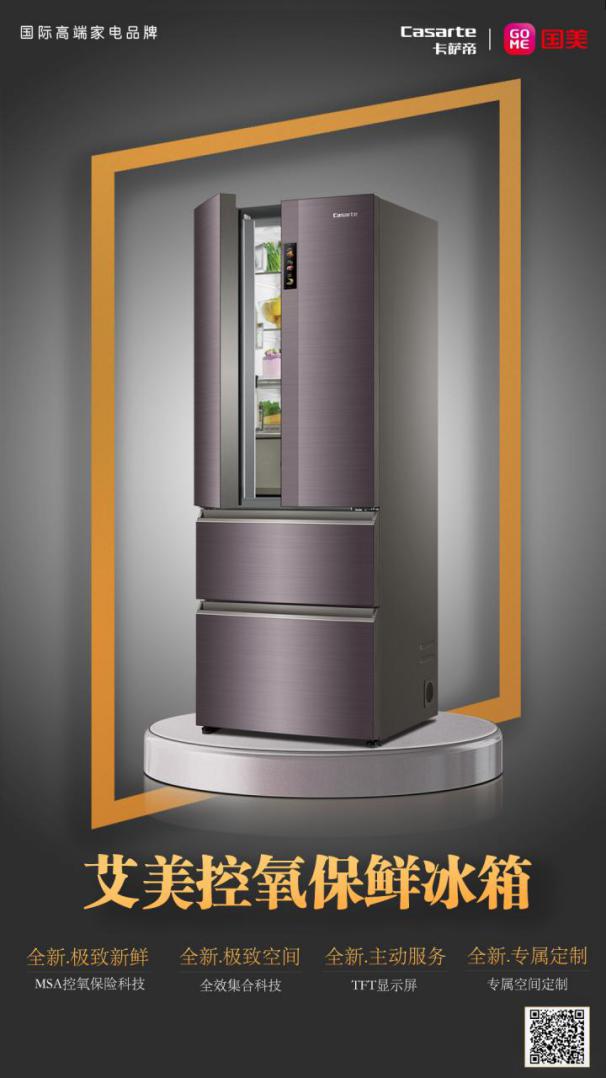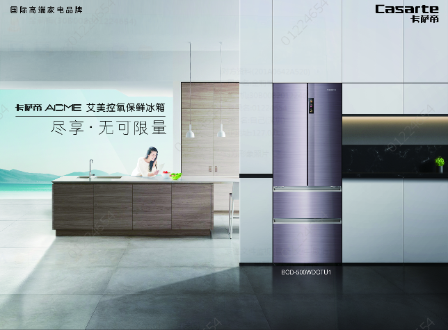 卡萨帝 ACME艾美控氧保鲜冰箱,MSA控氧保鲜科技,通过降低抽屉内氧气浓度,使食材休眠,达到食材保鲜的目的。相比普通冰箱,放在MSA控氧保鲜抽屉的食材,保鲜效果和时长延长8倍,即使半个月采购一次食材,也能随时吃到新鲜的水果和蔬菜;食材存放在卡萨帝MSA控氧保鲜抽屉中,还能保存住食材的美味因子,使食材保持原先的口感,比方存放水果,可以保存住草莓的柔嫩多汁和苹果的香脆口感;营养好,才能吃的健康,而存放在卡萨帝MSA控氧保鲜抽屉的食材营养留存率很高,以草莓为例,在MSA控氧保鲜抽屉里存放7天,相比普通冰箱,花青素提升34%,叶酸提升94.6%。