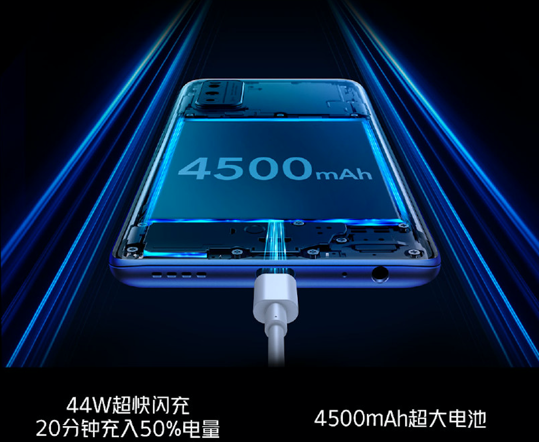 iQOO Neo3支持44W超快闪充,其采用行业先进的单电荷泵技术,转化率达97%,20分钟可充入50%电量。搭配4500mAh大容量电池,续航更持久、补电更迅速,让你玩到尽兴,不怕没电。