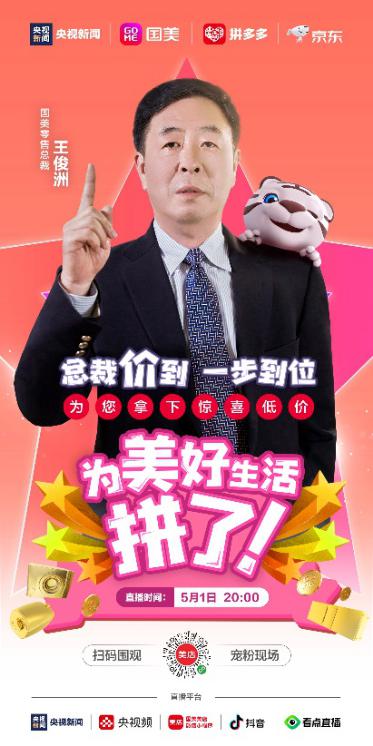 5月1日20点,央视新闻与中国家电连锁零售巨头国美零售联合发起一场家电直播盛宴。本次直播,央视新闻主持人朱广权、撒贝宁、康辉、尼格买提组成的“央视Boys”将与国美零售总裁王俊洲为用户带来包括海尔、华为、格力、美的、海信、TCL、方太、老板、荣耀、小天鹅、莱克等知名品牌的生活家电、数码3 C等产品,并在这场直播中推出了前所未有的爆款商品全网超低价抢购活动。