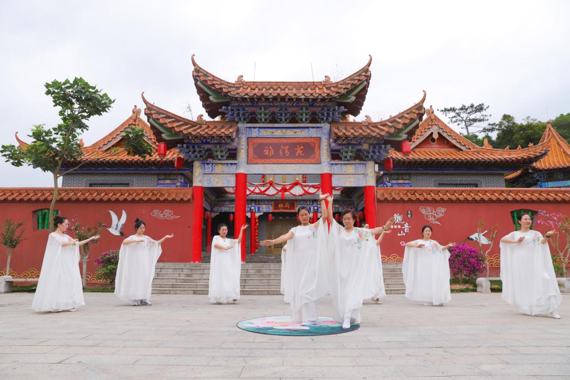 禅舞,作为时下兴起的一种修身养性的方法,受到广大女性的欢迎,尤其受忙碌于柴米油盐的家庭生活的妈妈们的喜爱。母亲节当天,舞者们一曲曲惊鸿禅舞在观音山呈现,她们中既有已为人母,也有为人儿女,在心灵的充盈和放松中尽显女性柔美,也为广大母亲送去了节日祝福,令现场游客惊艳不已。