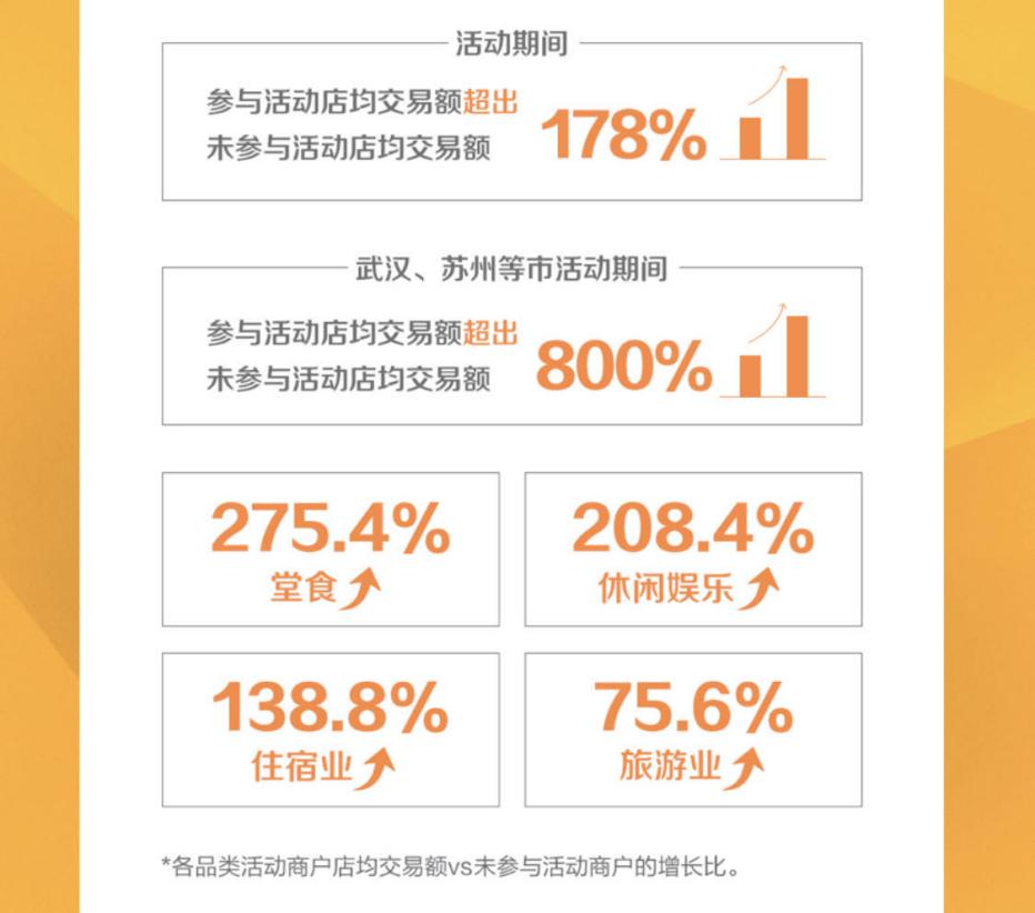 从数据来看,连接着消费者与620万家生活服务业商家的美团,通过发放消费券确实对于受到疫情严重冲击的餐饮、旅游等生活服务行业的“回血”起到了重要作用。美团研究院数据显示,活动期间参与活动商户的店均交易额超出未参与活动商户178%,台州、武汉等城市更是超出800%以上。