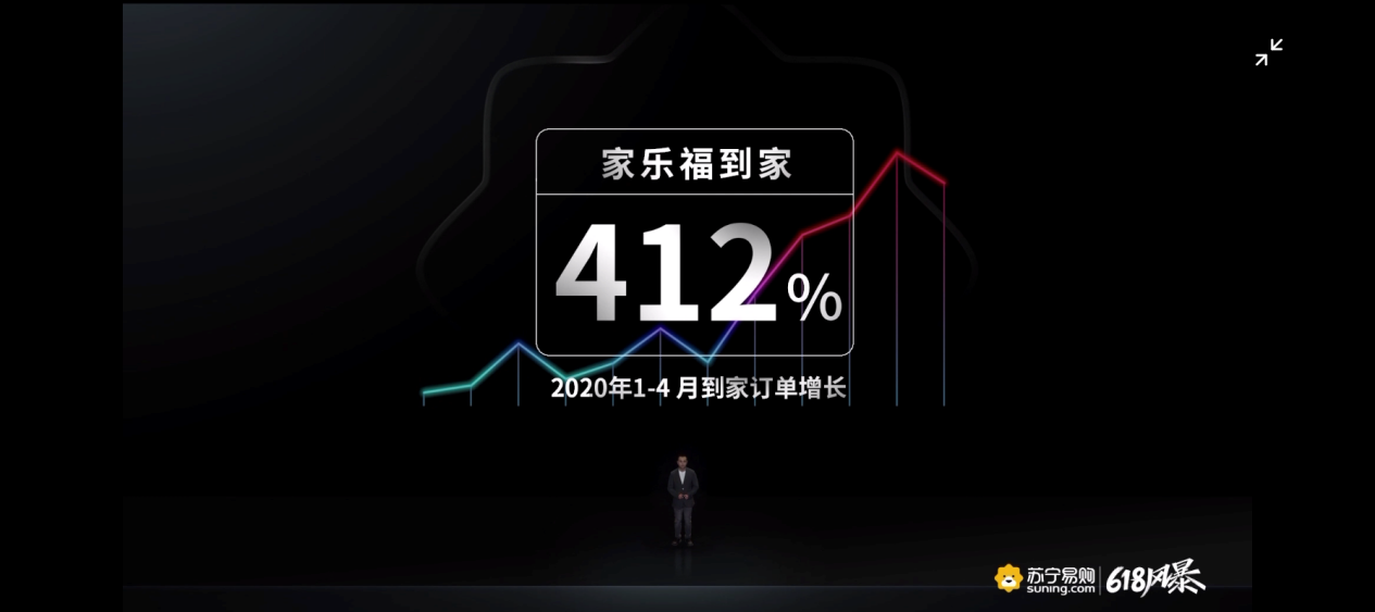 今年2月份,苏宁家乐福到家服务上线,在全国209家家乐福门店3公里范围内,消费者通过家乐福小程序、苏宁易购APP、苏宁小店APP,可以享受1小时送到家的服务。家乐福门店10公里内,实现了当日下午达、次日上午达。家乐福到家服务覆盖时令生鲜、粮油调味、酒水饮料、休闲零食、母婴用品、个护清洁、家居百货、各种进口商品等,满足了消费者“宅家抗疫”的生活刚需,上线后获得消费者追捧。苏宁易购一季度报显示,家乐福中国到家业务销售占比逐月快速提升,3月份占比近10%。苏宁大数据显示,苏宁家乐福到家业务1-4月份同比增长412%。