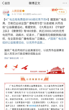二月广电总局曾组织大规模公益展播活动,180余部优秀作品无偿为各级电视台提供播出版权。深受孩子们喜爱的《猪猪侠》是其中之一,在疫情期间无偿捐赠给湖北广播电视台播放,小朋友们难熬的居家生活里多出了可爱猪猪侠的身影。