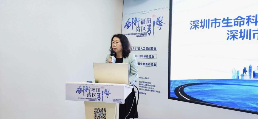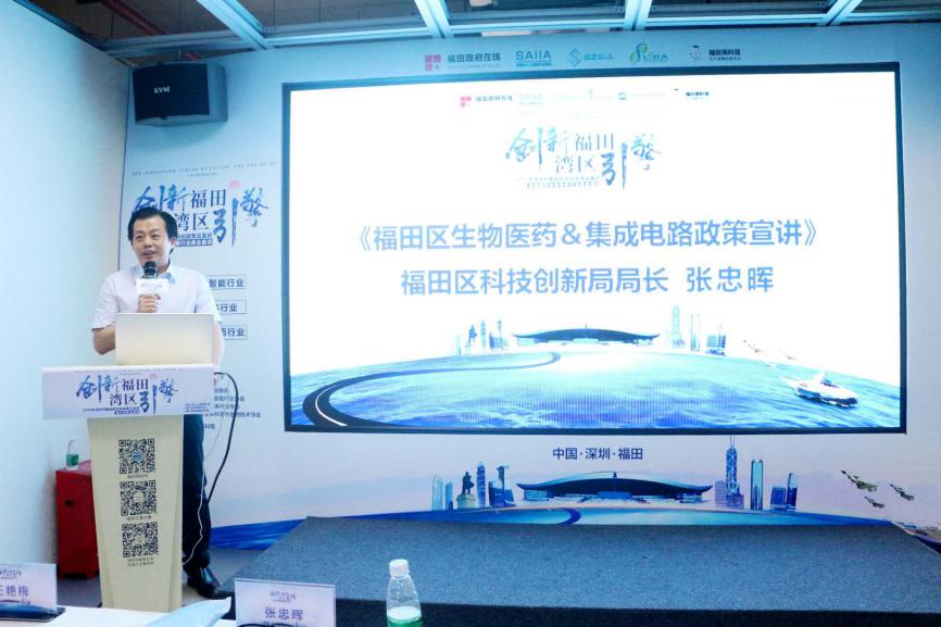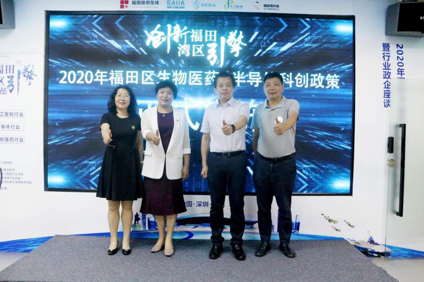 时春蕾书记、张忠晖局长、周斌会长、王艳梅所长联合启动“创新福田,湾区引擎”2020年福田区生物医药&半导体科创政策正式发布仪式。
