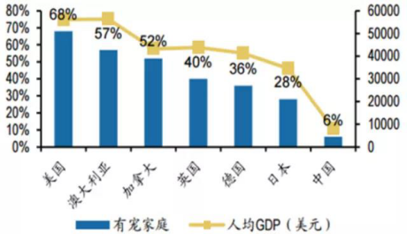 有资料显示,当一个国家的人均GDP达到8,000美元,宠物产业就会进入高速发展阶段,截止2016年,我国人均GDP刚步入8,000美元的行列,未来宠物产业市场前景广阔。