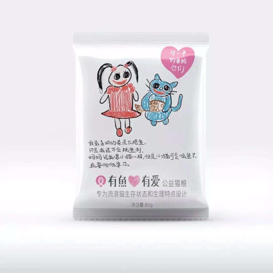 “感性”则代表了产品的温度。在开发“有鱼”主线品牌粮食开始,品牌就开始关注流浪猫,并在细致观察和研究了流浪猫的生存环境、常见的健康问题之后,研发团队为流浪猫特别研发了“有鱼有爱”公益猫粮,只免费捐赠,非定价售卖。