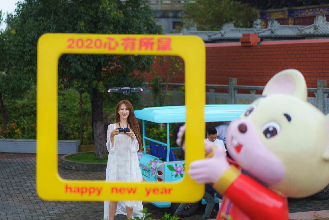 无人机大咖们熟练的操纵技巧、轻巧灵便的无人机,也成为了游客眼中一道靓丽的风景线。其中一位曼妙的身影引起了大家的注意,她是网红“女飞手”顿顿,慕名前来观音山采风赏景。小巧的无人机从她的掌中起飞,在高空记录着对这座青山的心动。顿顿表示,走进观音山非常开心,这座山不仅风景秀美,空间大,雨后的山体走势也格外惊艳壮观,非常适合航拍,航拍效果给力。在沿途航拍途中,单身的顿顿对观音山姻缘文化非常感兴趣,并在月老台前许下“脱单”的心愿。