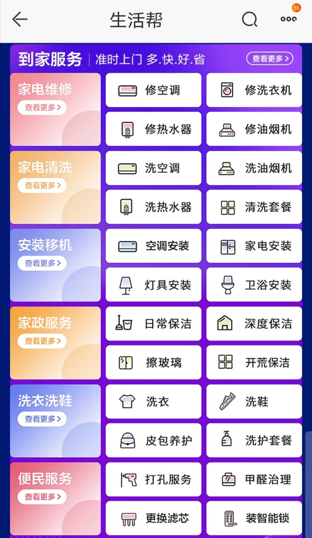 以苏宁生活帮为例。随着气温升高,空调维修需求攀升,消费者通过苏宁云店在线选择空调维修服务,苏宁易购即会自动匹配最近的服务人员上门维修。目前苏宁生活帮已覆盖全国近40个城市、超万个社区,为用户提供快递自提、到店寄件、家电清洗、家电维修、家政保洁等12项生活服务,疫情期间苏宁生活帮提供的清洁消毒、9道防护等服务赢得了消费者的一致赞誉。