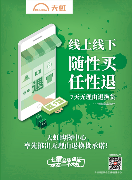 今年4月,为了营造温暖舒心的消费环境,深圳市消费者委员会发起“线下无理由退货承诺”,鼓励深圳线下实体店参与,改善居民消费体验,增强居民消费信心。天虹积极响应号召,作为深圳首批“线下无理由退货”的实体店参与并向广大消费者作出服服承诺,也将“承诺”推广至全国。值得一提的是,为了让购物中心的消费者能共享,天虹首次尝试在购物中心业态也深耕这项服务,竭力满足顾客需求。