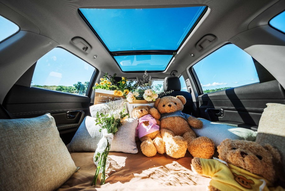 眼睛里是花海星辰和秀水青山,身体却像在家休息一样舒适,这不是虚拟的观景体验,而是真实的户外之旅,这种感觉需要一辆超赞的座驾帮你实现。我的座驾是宋Pro,后备厢空间超能“装”,就像一个移动的“储物间”,露营需要的帐篷、食物、衣服、摄像机、支架等都放进去,还有富余空间。而且,后排座椅放倒后,非常平整,配备车用“褥子”和抱枕,摇身一变为“卧室”,媳妇儿和女儿玩累了可以躺上去休息,晚上也可以当成露营“帐篷”,一家三口躺在车上,看着星空,人生如此美妙!