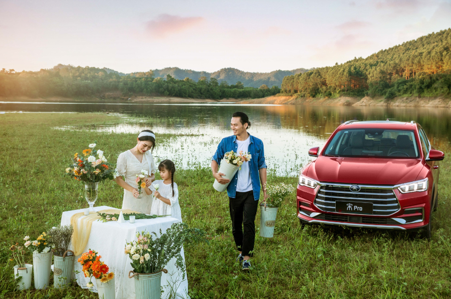低丘环绕,碧水蓝天,芳草之间错落着色彩娇艳的花朵,随手一拍便有大片的质感,宋Pro落入其中,毫无违和感。我们都是颜控,当初相中宋Pro也主要是因为颜值够高。从正面看,宋Pro像极了一张“龙脸”,眉、眼、嘴等刻画形象生动,而在整车细节上,融入了充满现代感的细节设计手法,时尚潮流与东方韵味完美融合。在夜晚打开车灯后,宋Pro更加传神,大量LED光源笼罩车身,精美细腻,让人眼前一亮。