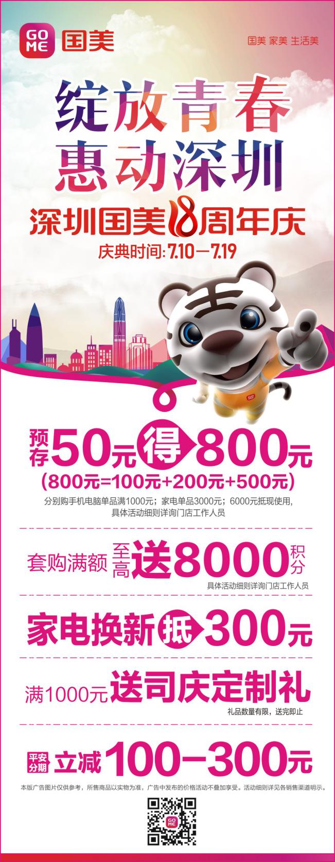 时间是最好的见证者,万分荣幸我们和辛勤的深圳建设者一起见证了这座伟大城市的发展与变迁,深圳无疑是充满创造力和奇迹的城市,时间就是金钱,效率就是生命是这座城市的座右铭。为感谢粉丝们一直以来对国美的支持与厚爱,值此18周年大庆之际,深圳国美于7月10日-19日举办了一场“绽放青春,惠动鹏城”18周年庆活动!