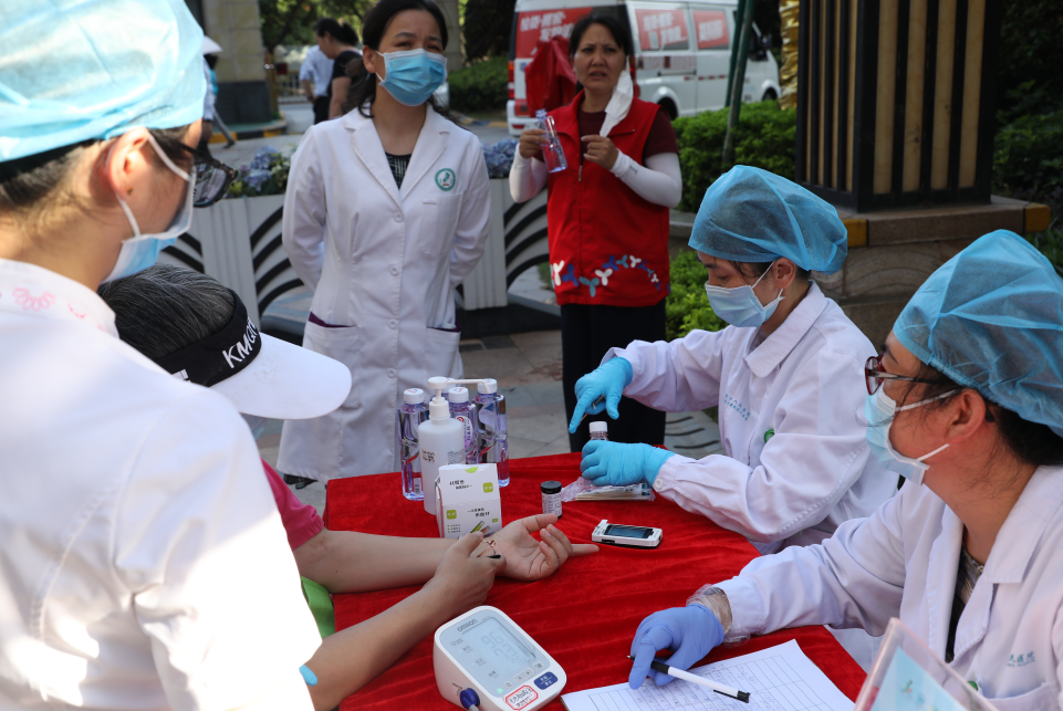 健康素养知识的提升不能仅仅停留在学习相关条例与政策,提高社区居民的健康意识需要深入居民身边,让居民足不出户就可以享优质的医疗健康咨询服务,满足居民的医疗和保健需求。本次活动现场的义诊专家现场认真接待每一位前来问诊的群众,仔细的为居民测量血压、血糖,耐心的解答群众咨询,诊断各类常见病、多发疾病,指导群众规范用药。尽量做到让每一位前来就诊的群众享受到“家门口”优质的医疗服务。
