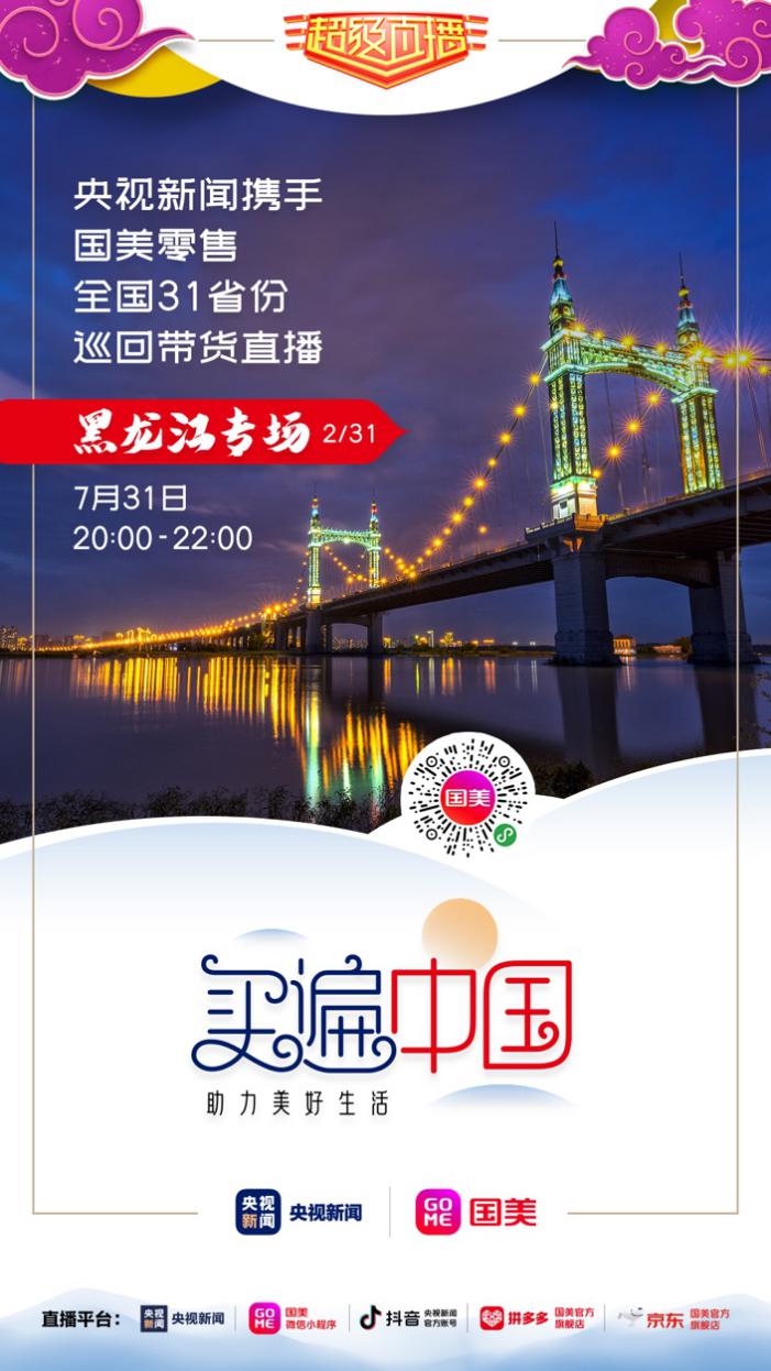 7月31日,“买遍中国·助力美好生活——央视新闻&国美零售全国31省份巡回带货直播”第二站聚焦黑龙江,回眸东北这片热土。本次直播延续了国美一贯的开放与亲民风格。央视体育主播张斌将与三位世界冠军——中国首位冬奥会冠军杨扬、冬奥速滑冠军张虹、冰壶世界冠军王冰玉及央视主持人敬一丹同台带货,除了推荐国美热销的数十款家电及消费电子产品,更带来了众多黑龙江特色产品。