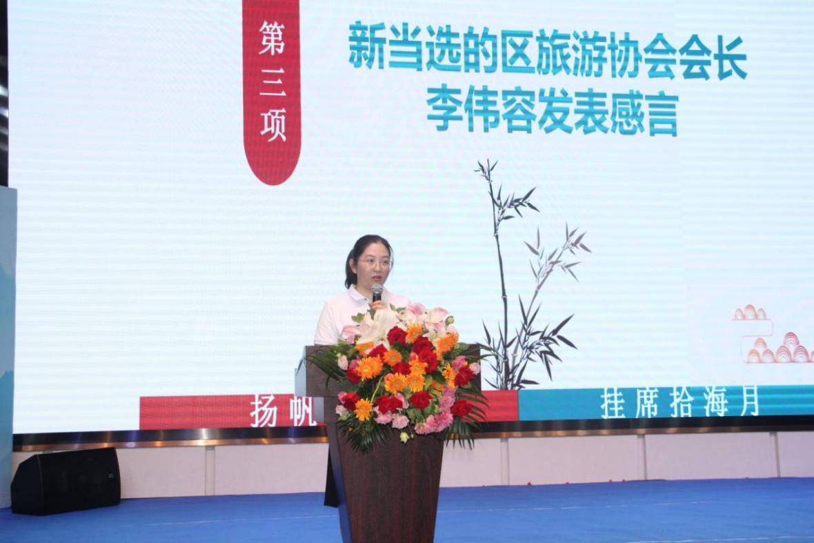 李伟容作为新当选会长作表态发言,她表示将充分履行协会职能,积极配合惠阳区文广旅体局创造性开展各项工作,特别是要在维护旅游市场秩序,提高服务质量,加强交流合作,宣传推广等方面发挥积极作用,努力开创旅游协会工作新局面,为惠阳旅游产发展贡献力量。