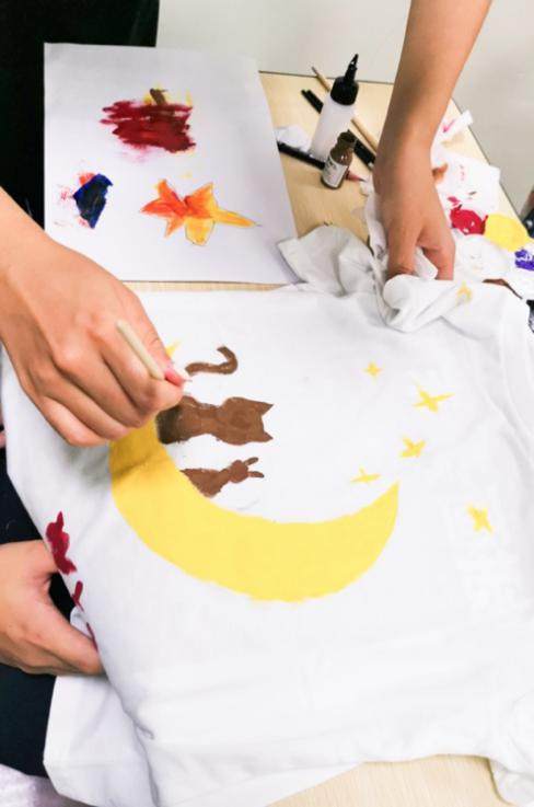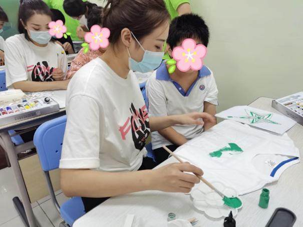 小星星们在康复中心接受系统的康复训练,平时也有音乐课、美术课,不过在T恤上涂鸦还是第一次。星星是什么颜色的呢?在这些特殊的孩子心中都有自己的答案。10位志愿者小姐姐一对一陪坐在孩子们身边,以前她们学习色彩知识是为了提升专业能力,而这次是用色彩开启小星星们的好奇和想象,用色彩的力量点亮他们的小小世界,一起感知爱、表达爱,传递爱,为爱填上温暖的底色。“这些孩子们很喜欢画画,画画应该是他们沟通世界的另外一种语言。”星星康复中心的老师说。