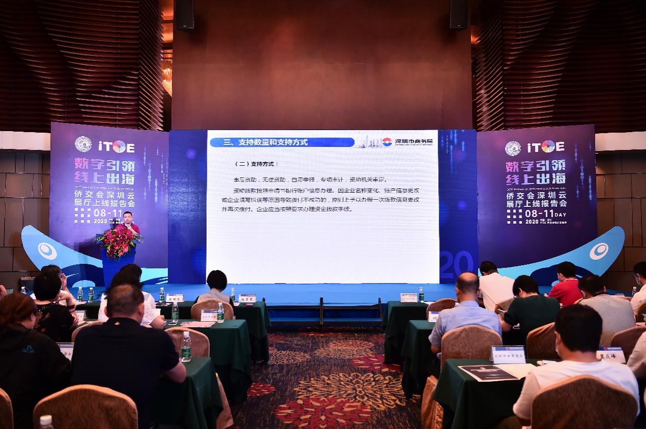 见圳客户端·深圳新闻网2020年8月12日讯(记者 张俊达)昨天,“数字引领•线上出海”侨交会深圳云展厅上线报告会在深圳绿景酒店三楼会议厅成功召开。以"数字引领•线上出海,提升企业国际竞争力"为主题,本次报告会重点展示“ITOE侨交会深圳云展厅”创新会展模式、解读疫情之下外贸中小企业如何通过数字化转型,并带来2020年度最新中央外经贸发展专项资金政策宣讲。深圳多个商会、行业协会,以及侨企、港企、深圳外向型企业、展览公司近200名代表参加报告会。
