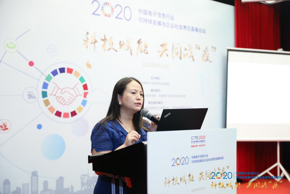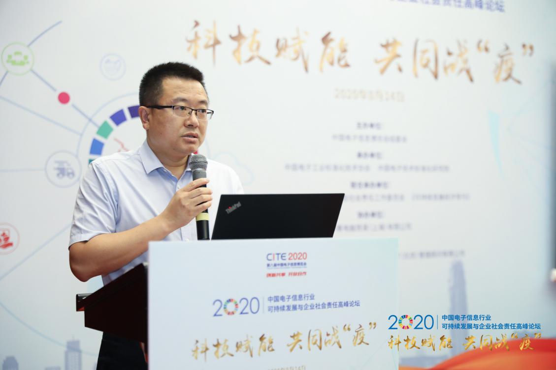 工业和信息化部产业政策与法规司综合处处长徐华在致辞中表示:面对新型冠状病毒肺炎疫情的汹涌来袭,电子信息行业企业积极承担社会责任,构筑起了战“疫”坚固防线,充分发挥自身专业优势,运用信息技术能力,为抗击疫情、复工复产做出了积极贡献。产业政策与法规司作为工业和信息化部负责推动企业社会责任建设的主管司局,为深入贯彻落实党中央国务院关于企业社会责任工作的要求,进一步加强新时代工业通讯业企业社会责任的建设,2020年,我们积极推进《关于推动工业通信业企业社会责任指导意见》的研究与出台,探索建立企业社会责任意识和能力提升机制,推动企业社会责任培训和宣传交流工作。同时,通过搭建企业社会责任公共服务平台,为宣传企业社会责任政策和为企业开展社会责任信息披露及沟通交流提供服务。