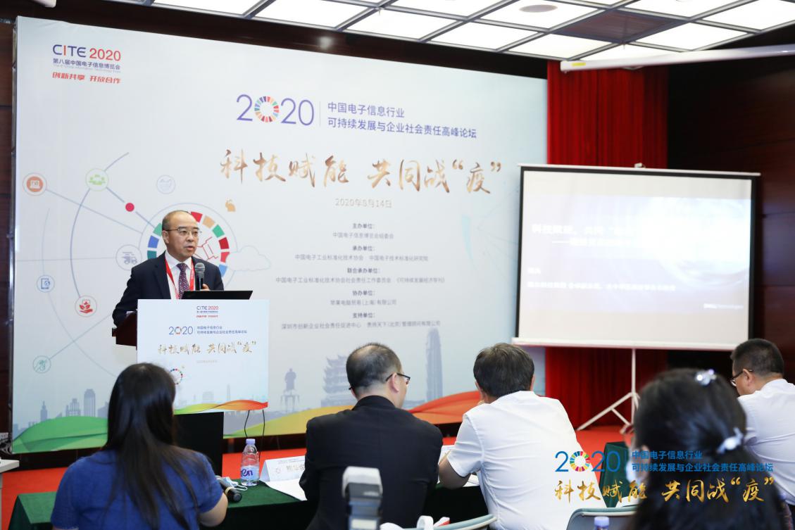 见圳客户端·深圳新闻网2020年8月18日讯 近日,中国电子信息行业2020可持续发展与企业社会责任高峰论坛在深圳会展中心成功举行。本次论坛由中国电子信息博览会组委会主办,中国电子工业标准化技术协会、中国电子技术标准化研究院承办,中国电子工业标准化技术协会社会责任工作委员会和《可持续发展经济导刊》杂志社联合承办,行业内领先企业积极参与,以“科技赋能共同战‘疫’”为主题,共同交流分享电子信息行业企业抗击新冠肺炎疫情的典型经验和做法。