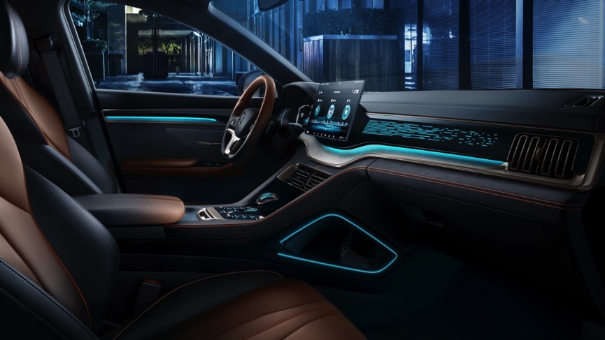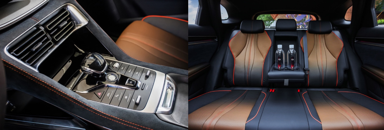 其以极具辨识度的内凹铠甲式进气格删、晶钻龙眼 LED前大灯等诠释龙魂之美,而车身那些飘逸的细节线条,尤其那道从发动机盖贯穿到尾部的“一体式腰线”设计,让曲面之间的光影效果惹眼又显精致。