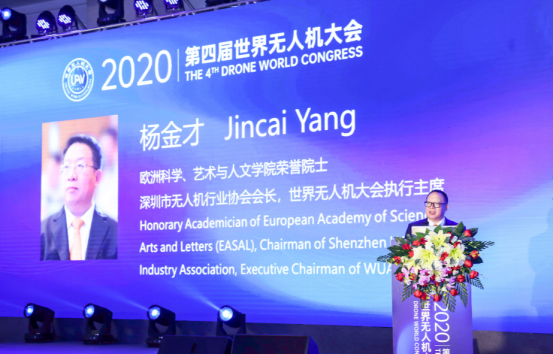 2020世界无人机大会执行主席、深圳市无人机行业协会会长、欧洲科学、艺术与人文学院荣誉院士杨金才致开幕词,欧洲科学、艺术与人文学院院士,俄罗斯社会科学院院士、格鲁吉亚国家科学院外籍院士、国际精准农业航空学会主席兰玉彬教授主持大会论坛,2020世界无人机大会秘书长杨鹏主持大会开幕式。