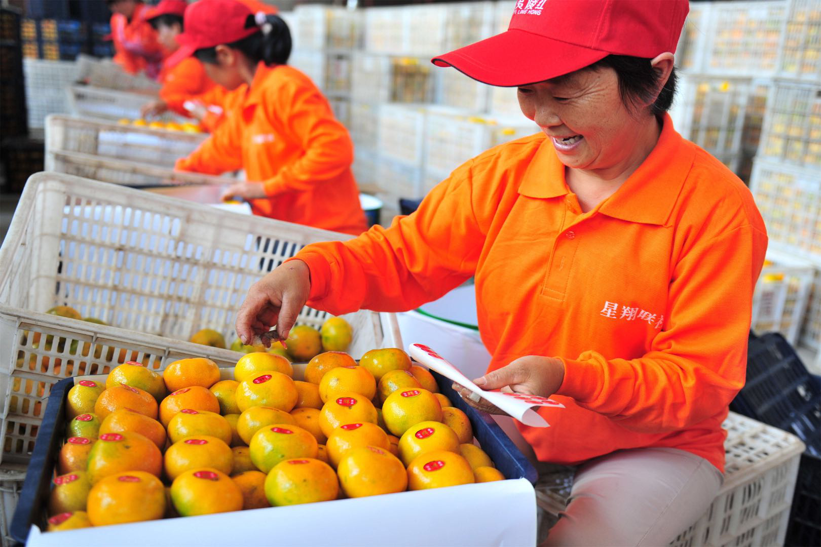 包装车间内,工人们正在将早熟蜜桔清洗分拣,挑选好的进行装框。今年恰逢柑橘丰收大年,联合社预计总产量有18万多吨,为了稳定国内市场,对国外市场有所突破,联合社主抓产品质量。