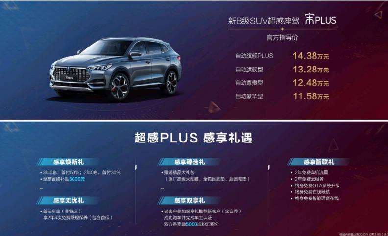 见圳客户端·深圳新闻网2020年9月17日讯(记者张俊达)昨天,比亚迪年度又一重磅新车—宋PLUS在“天府之国”成都震撼上市!此次上市的宋PLUS燃油版本共发售四款车型,全国统一售价为11.58万元 -14.38万元,同时带来“感享焕新、感享无忧、感享甄选、感享双享、感享智联“五大专享礼遇,为用户带来 PLUS版本的超感用车体验。