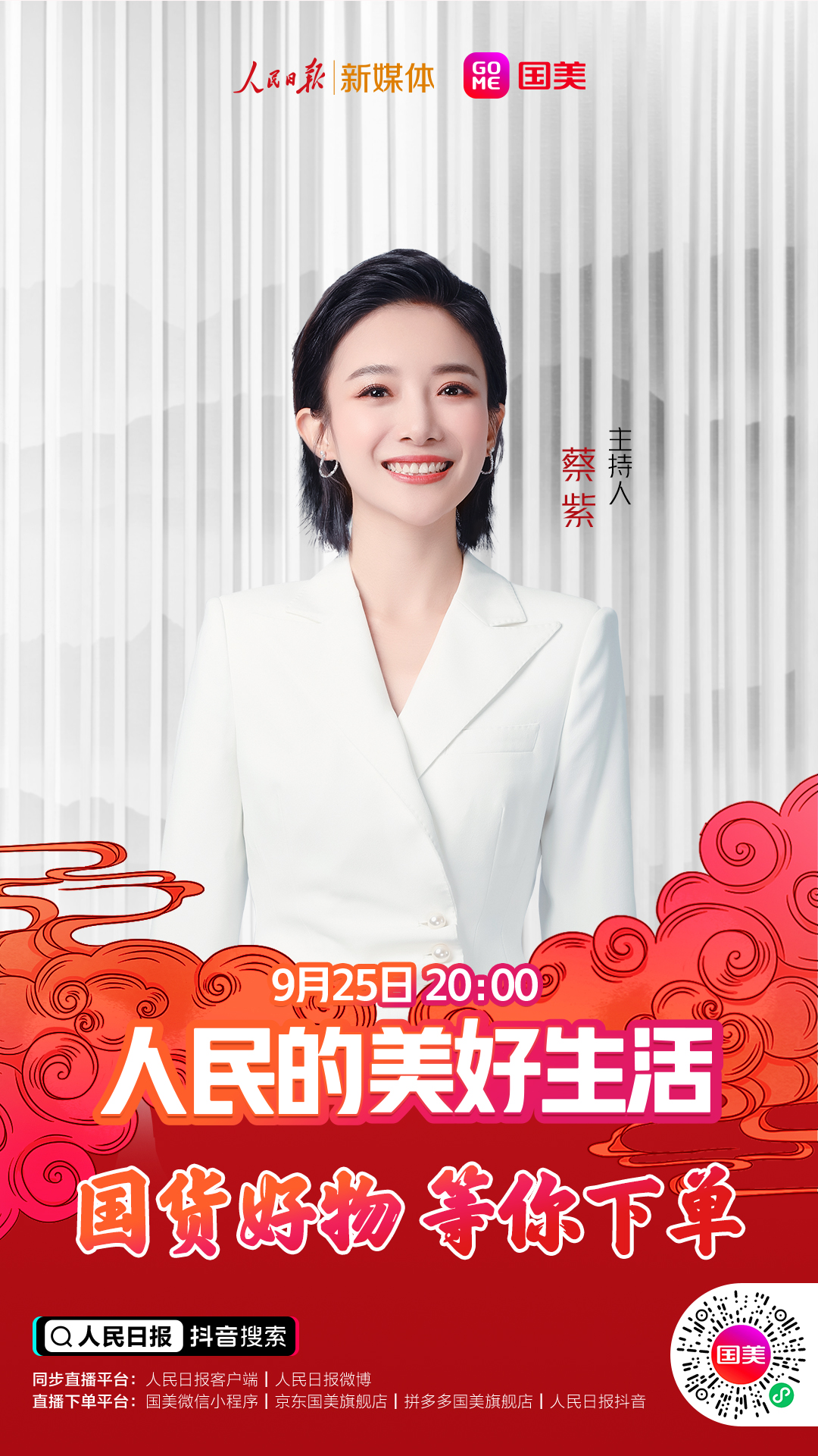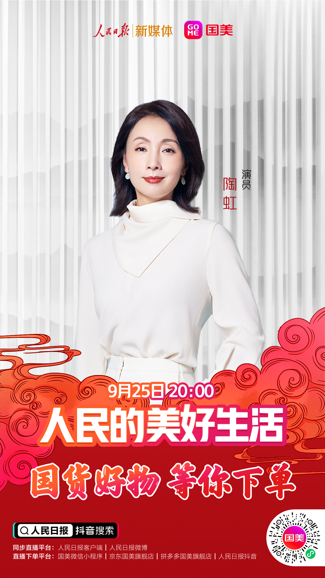 9月25日(周五)晚20点,锁定人民日报抖音号、国美商城抖音号、国美微信小程序、国美京东旗舰店、国美拼多多旗舰店,关注直播,国货好物,等你下单!人民的美好生活,不能少了你!(常军平)
