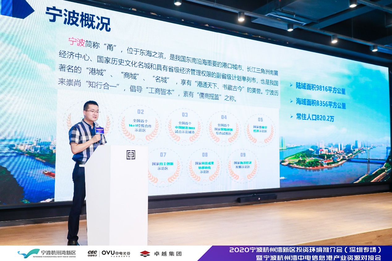 见圳客户端·深圳新闻网2020年9月25日讯 昨日,由中电光谷集团和卓越置业集团联合主办、宁波卓越光谷置业有限公司和武汉零度资本投资管理有限公司共同承办的“2020宁波杭州湾新区投资环境推介会暨宁波杭州湾中电信息港产业资源对接会”在深圳市福田区中电智谷国际智能硬件创新创业集聚示范区圆满落幕。