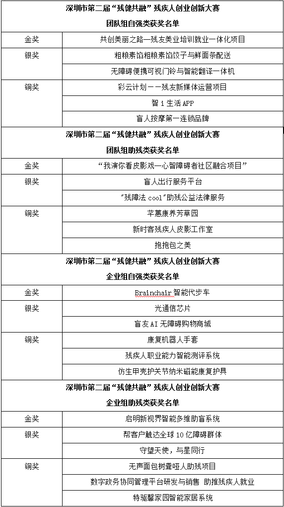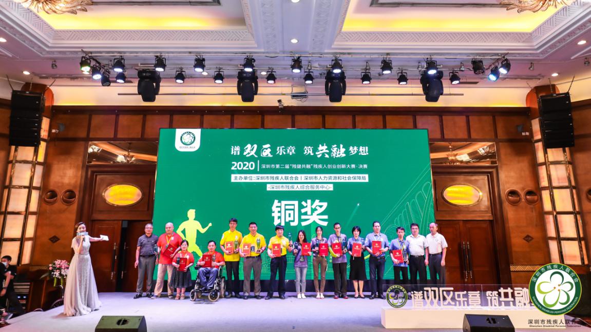 见圳客户端·深圳新闻网2020年9月30日讯(记者 张俊达)昨天,由深圳市残疾人联合会与深圳市人力资源和社会保障局共同主办,深圳市残疾人综合服务中心承办,各区(新区)残疾人联合会、各区(新区)残疾人就业服务机构联合协办的深圳市第二届“残健共融”残疾人创业创新大赛决赛暨颁奖典礼圆满落幕。大赛共评选出4个金奖、8个银奖、12个铜奖及若干个优胜奖。现场有来自残联单位、企业、高校、社会组织等代表100余人参加本次活动。