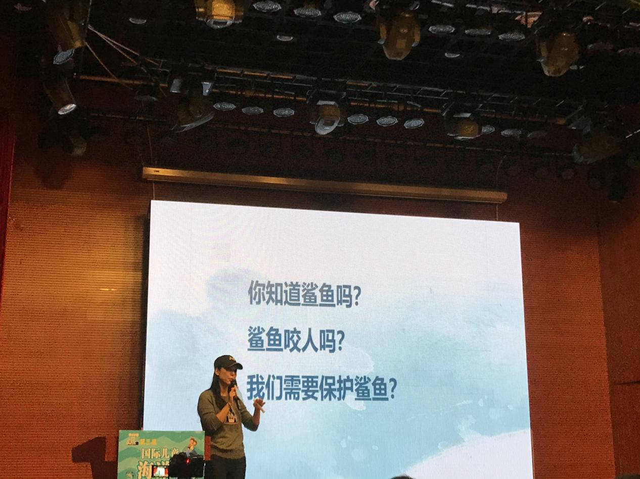 随后,活动现场邀请了《水下中国》纪录片导演周芳开展 《蓝色鲨漠》科普讲座,带领现场观众认识鲨鱼,揭秘鲨鱼和人类的关系。