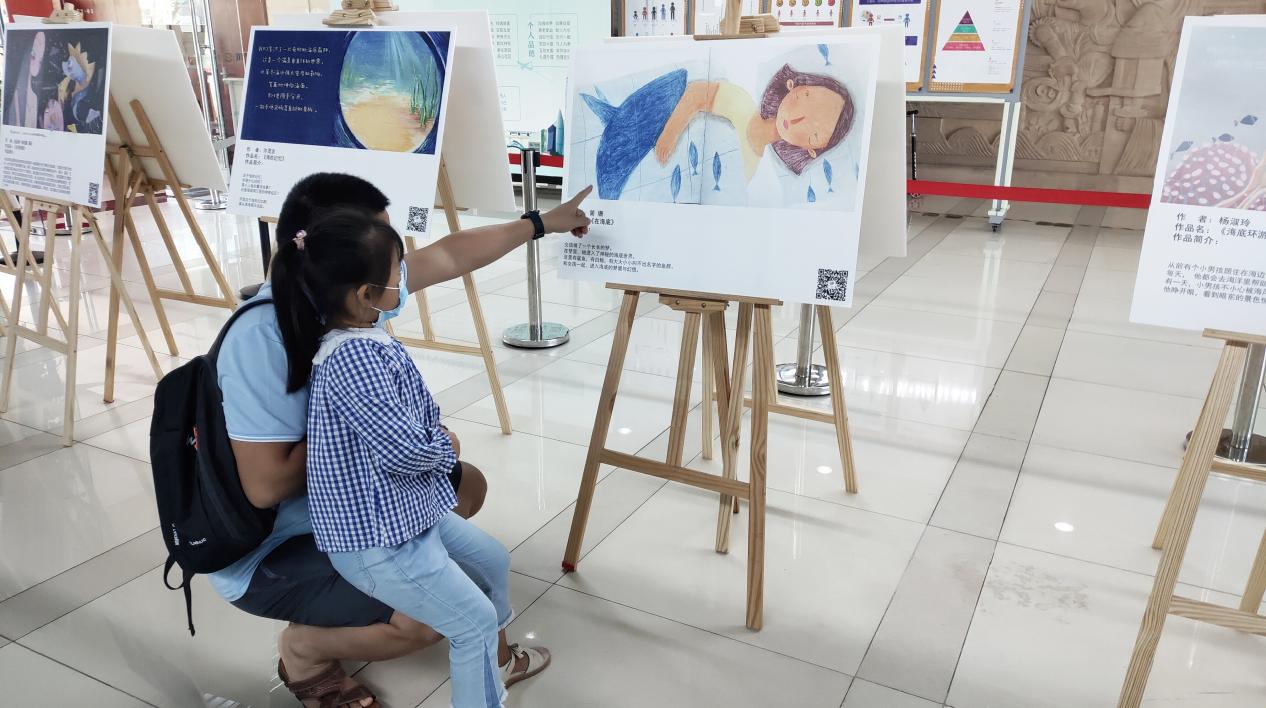 本次闭幕式活动包括儿童海洋绘本展、公众海洋科普讲座等形式多样的内容。走进少年儿童图书馆中厅,充满了海洋气息。