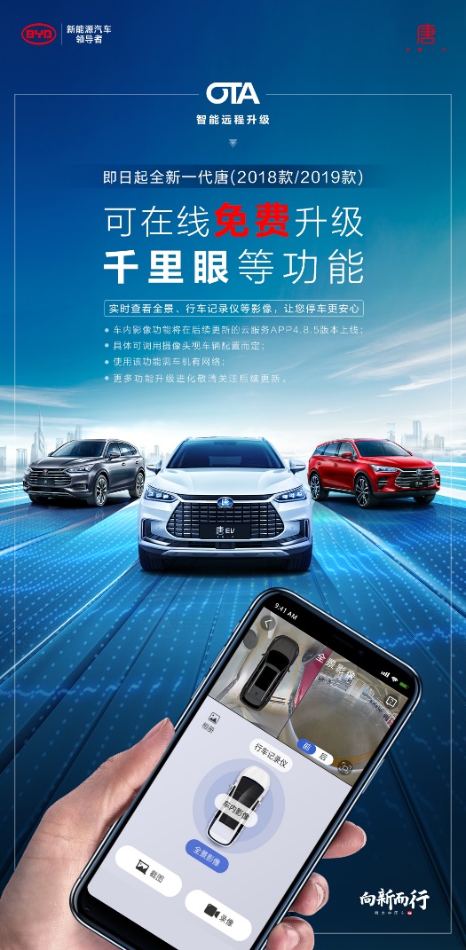 见圳客户端 ·深圳新闻网2020年10月27日讯 全新一代唐(2018款/2019款)的用户们有福了,比亚迪官方将对这几款车型进行免费OTA升级,新增“千里眼”模式、百变主题、主动问候、童声识别等11项功能。