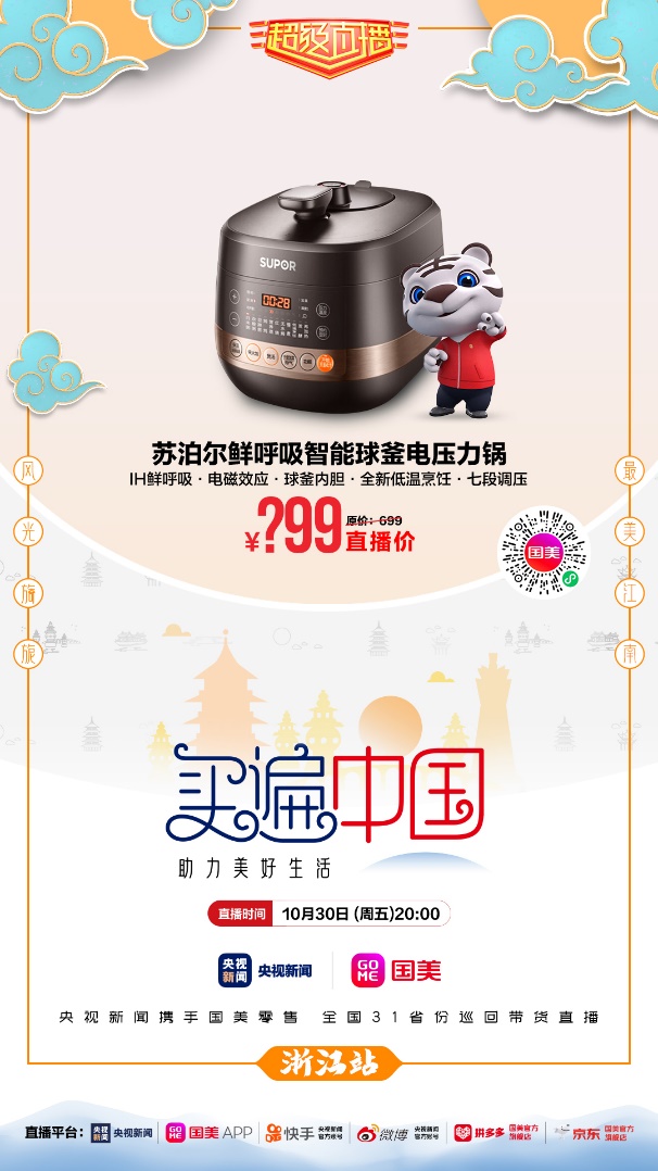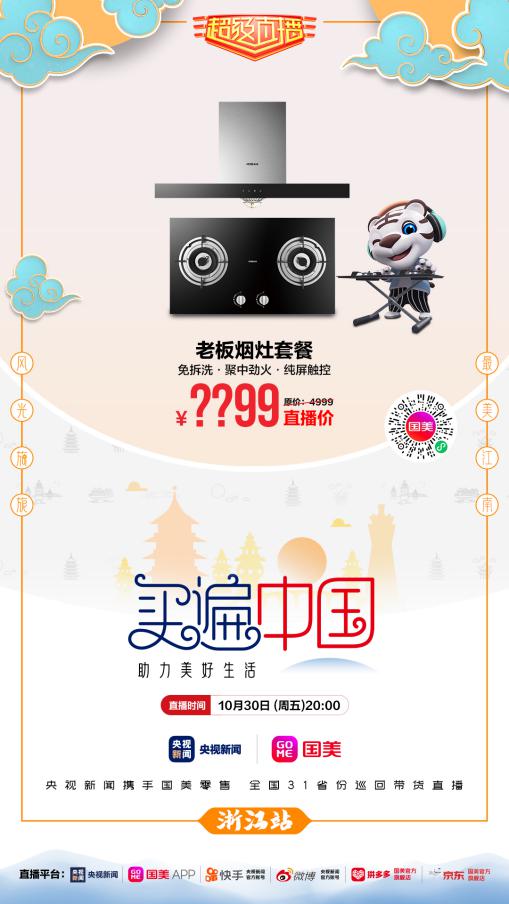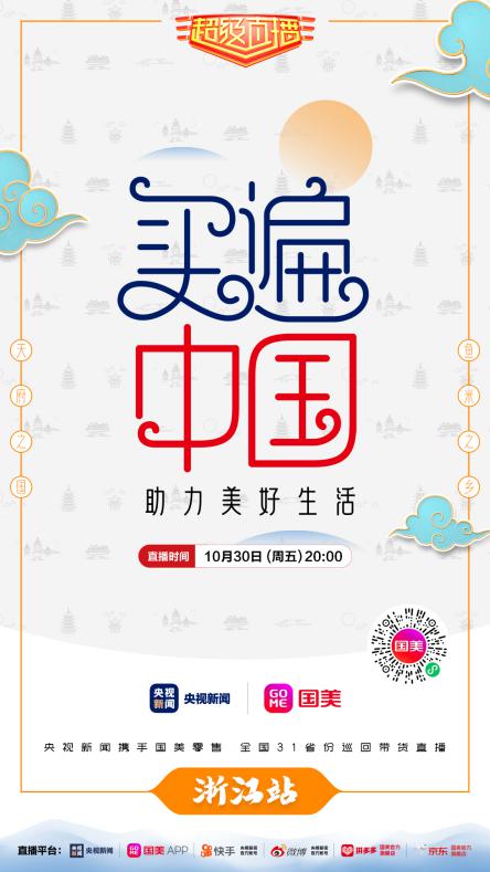 见圳客户端·深圳新闻网2020年10月30日讯 今天晚上20点,国美&央视新闻“买遍中国”带货直播首次下江南,来到浙江杭州。