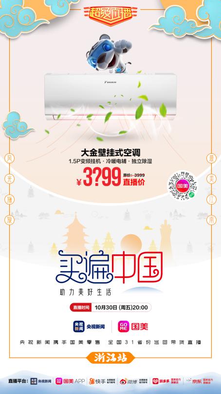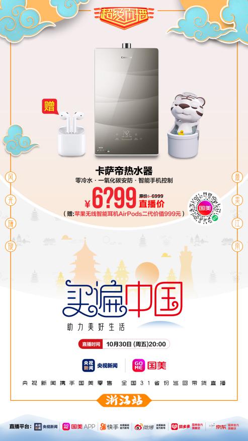 10月30日晚20点,记得锁定国美APP、京东国美官方旗舰店、拼多多国美官方旗舰店,及央视新闻客户端、央视新闻官方微博、央视新闻官方快手号,关注直播,以超值的价格抢国美真选大牌家电! (常军平 )