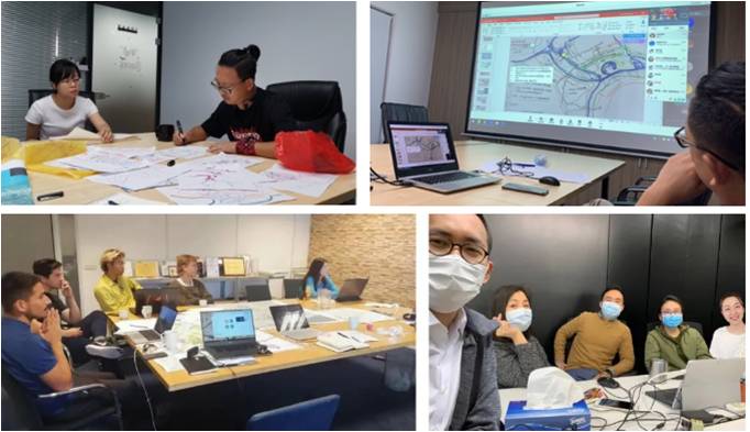 刘芳宏项目总监: 大家快速形成一个团队,共同探讨、决策,各自发挥优势。比如电建华东院在水工专业方面可以一票否决;荷兰团队在水治理方面有最先进的理念和最全的专业配置,负责方案的整体规划;香港团队则在城市设计部分体现了非常棒的专业水准。而我们岭南在实地踏勘调研方面做得最多,提出了很多原创性的想法,而且不止局限在景观部分,实际也承担了一部分对整体成果的把控和最终的汇报答疑工作。